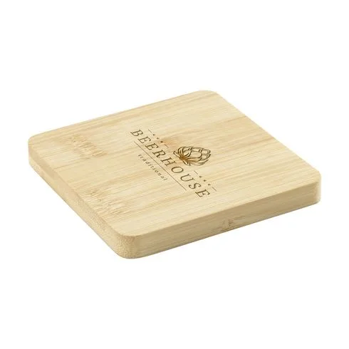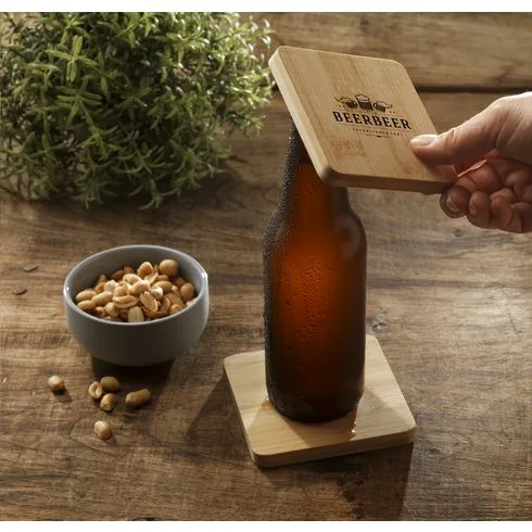 Kvadratni podmetač od bambusa s metalnim otvaračem za boce na dnu. Praktičan i višenamjenski. Bambus je prirodni materijal, pa boja može varirati kod svakog proizvoda.
