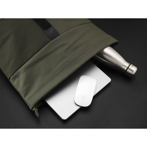 Wow! Praktičan, čvrst i prostran ‘rol-top’ ruksak s dodatnim džepom na prednjoj strani. Ovaj ruksak ima praktično zatvaranje na rolu s čičkom na vrhu, kao i patentni zatvarač. Vanjski materijal ovog ruksaka izrađen je od vodootpornog PU-a. Unutrašnjost ovog materijala izrađena je od recikliranog PU-a.
