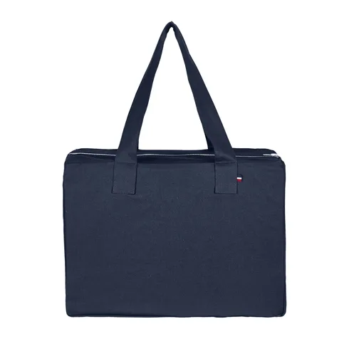 Torba izrađena u Francuskoj od 50% recikliranog pamuka i 50% pamuka. Opremljena metalnim patentnim zatvaračem i pojačanim ručkama. Praktična za putovanja, dostupna u 3 boje.