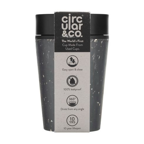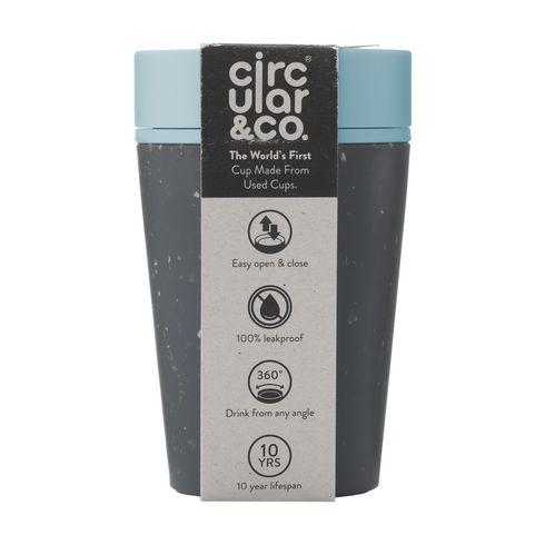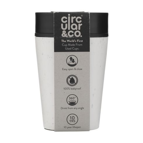Dvostruko izolirana, višekratna čaša s poklopcem marke Circular&Co. Vanjski sloj izolacije ove čaše izrađen je od korištenih, recikliranih papirnatih čaša za jednokratnu upotrebu. Unutarnji zid i poklopac izrađeni su od PP materijala. 100% nepropusna. Izolacijski učinak čuva vaše piće toplim, a hladno piće hladnim duže vremena. Poklopac je dizajniran s patentiranom tehnologijom 360 stupnjeva, koja vam omogućuje da pijete s bilo kojeg kuta. Čašu za kavu možete otvoriti i zatvoriti jednom rukom i jednim klikom. Idealno za ponijeti. Sigurno za hranu, bez BPA i melamina. 100% reciklabilna.