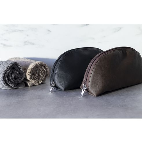 Torbica za kozmetiku napravljena od jabučne kože, alternativa pravoj koži. Pulpa jabuka, koja ostaje nakon izrade jabučnog soka, osnova je za izradu ovog materijala koji izgleda i osjeća se kao prava koža. Ovaj inovativni proces je održiv i veganski. Otpad od jabuka se obrađuje, a zatim se kombinira s mješavinom PU-a, poliestera i pamuka. Ova ručno izrađena torbica za kozmetiku ima YKK patentni zatvarač, podstavu od 100% recikliranog PET-a, europske je proizvodnje i dodatni džep iznutra.