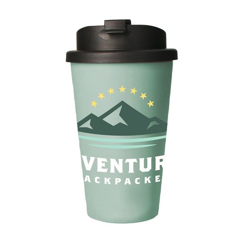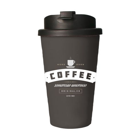 Doppellagiger Thermosbecher für Becher. Hergestellt aus 100% recyceltem, robustem Biokunststoff. Dieser langlebige Becher verfügt über einen Schraubdeckel mit einer Getränkeöffnung mit integriertem Verschluss, um unerwünschtes Auslaufen zu verhindern. Er passt in einen Standard-Getränkehalter in Autos und ist daher perfekt für unterwegs. Umweltfreundlich, BPA-frei. Fassungsvermögen 350 ml. Hergestellt in Deutschland. Die Oberfläche ist ideal für den iMould-Farbdruck (wasser-, kratz-, farb- und UV-beständig) aller Designs.
